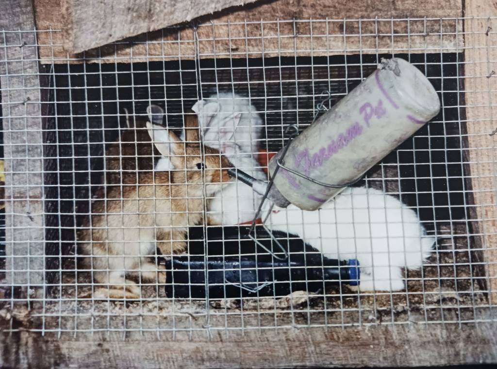 Jacmel (2000-2002) - Élevage de lapins – Des lapins dans leur cage recevant des soins.