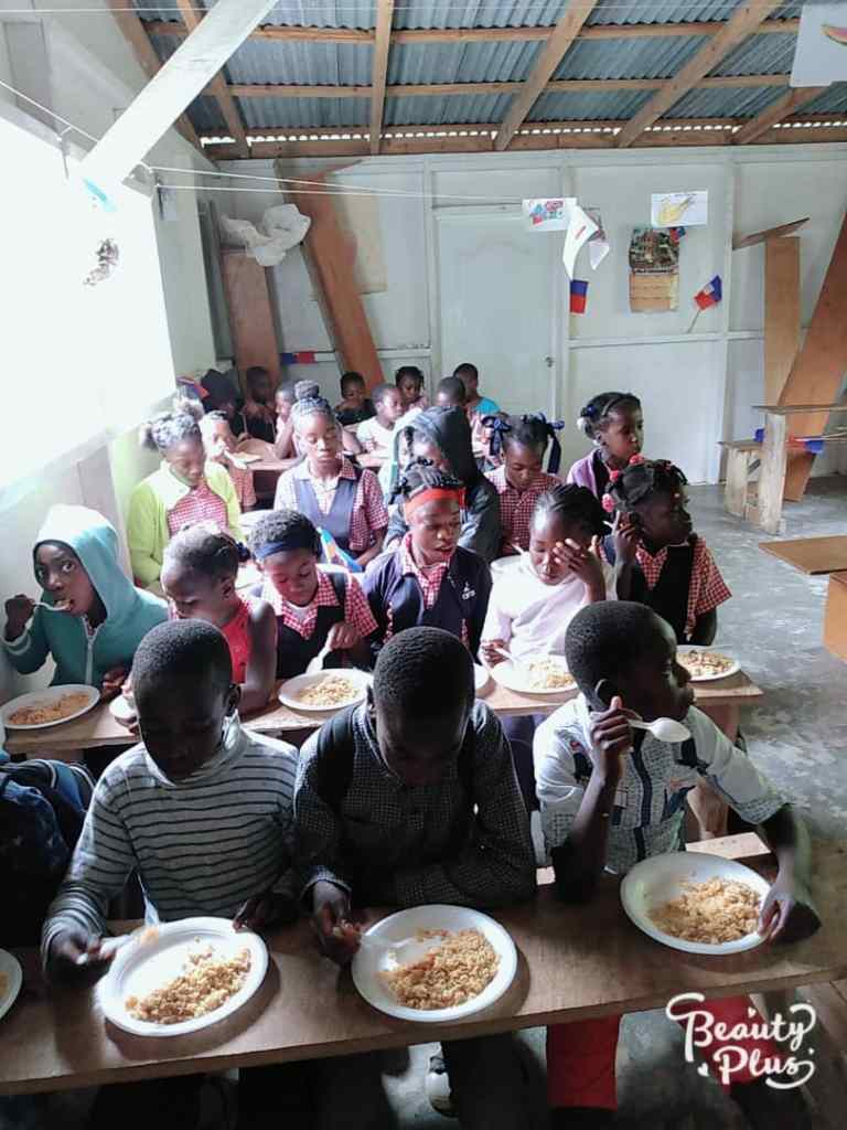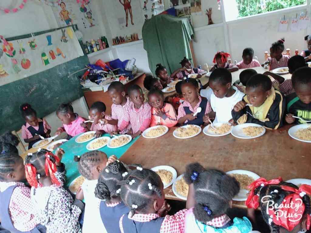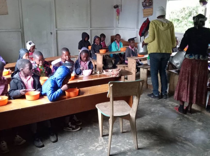 Ferme École de Godino – Nouvelle Tourraine, Furcy – (1999 – 2023) – À la recréation, les élèves reçoivent un repas à l’école.