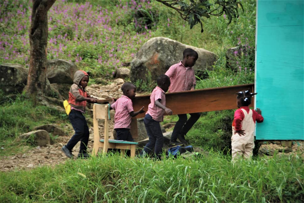 | La Ferme école de Godino ( Fèm Lekol Godino) a commencé en 1983 à Nouvelle Touraine, Furcy. , Haiti . Elle logeait sous une tonnelle, travaillait avec une classe et un enseignant. Elle s’est agrandie, au fil du temps, du préscolaire à la 7ième année. En 2003, pour la première fois, trois (3 ) élèves de la zone ont participé aux examens officiels du Certificat d’études primaires. En 2005 les fondateurs ont dû passer la main à une organisation « Soleil de Hollande » qui l’a maintenue en vie jusqu’en 2015. À partir de 2017, l’école a repris grâce au concours de trois (3) anciens élèves de l’école et de donateurs dont ÉSÉE-MONDE. Ce tandem a permis, en 2024, que l’effectif scolaire atteigne cent quatre-vingt-quatre (124) élèves. |