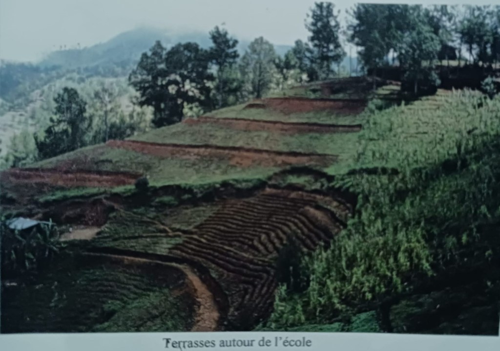 Construction de terrasse pour préparer une plantation de pommes de terre par les parents des élèves de l’école- Nouvelle Tourraine, Furcy – 2000