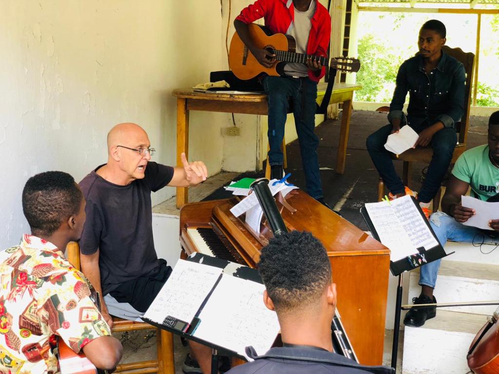École de musique de Marmelade – Marmelade – Camp annuel d ‘été (2020-2023) – Professeurs et élèves pendant des séances de formation .